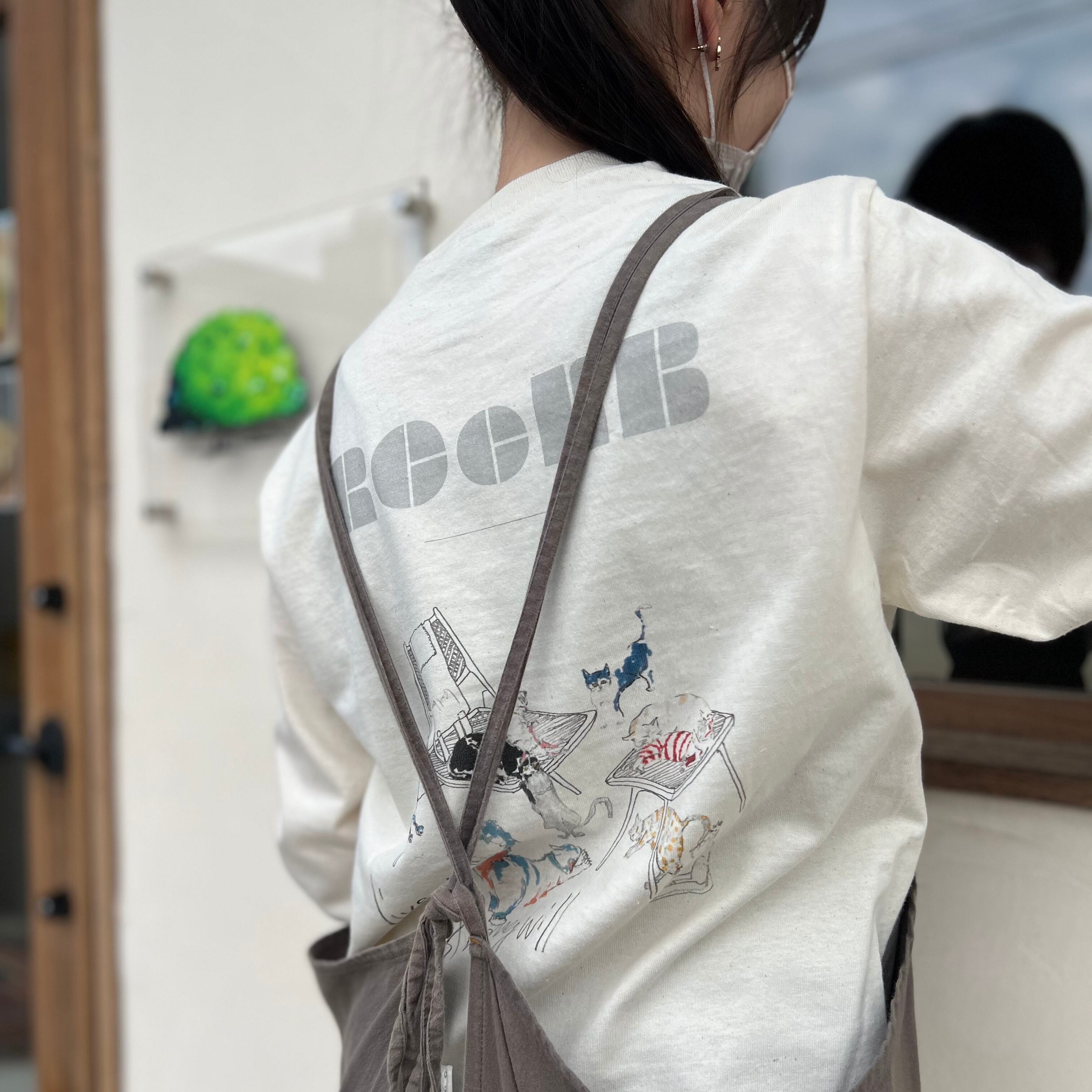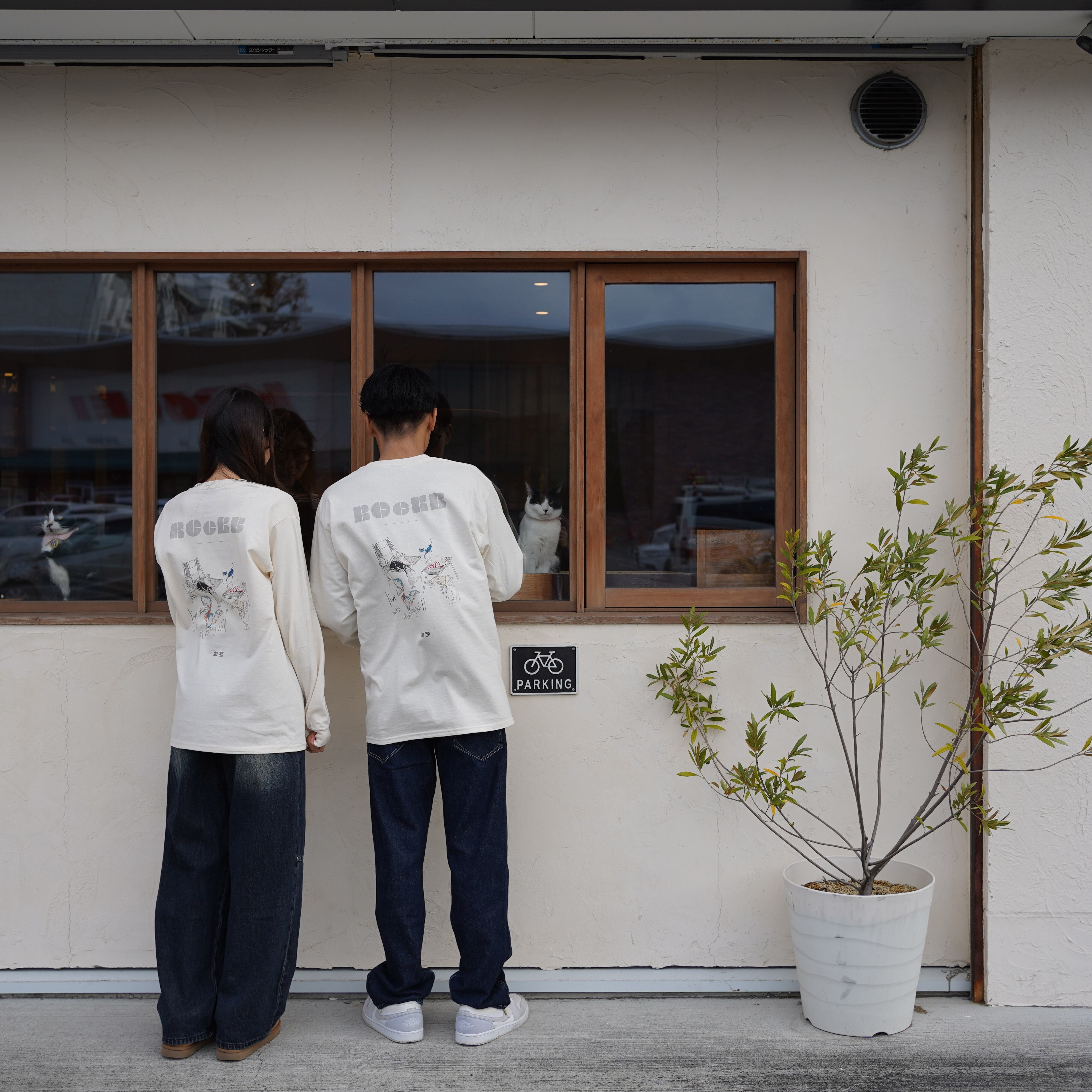 KATBOS歴代の保護猫ちゃん達が自由に生きている姿がモチーフに描かれた、オリジナルロングTシャツ。