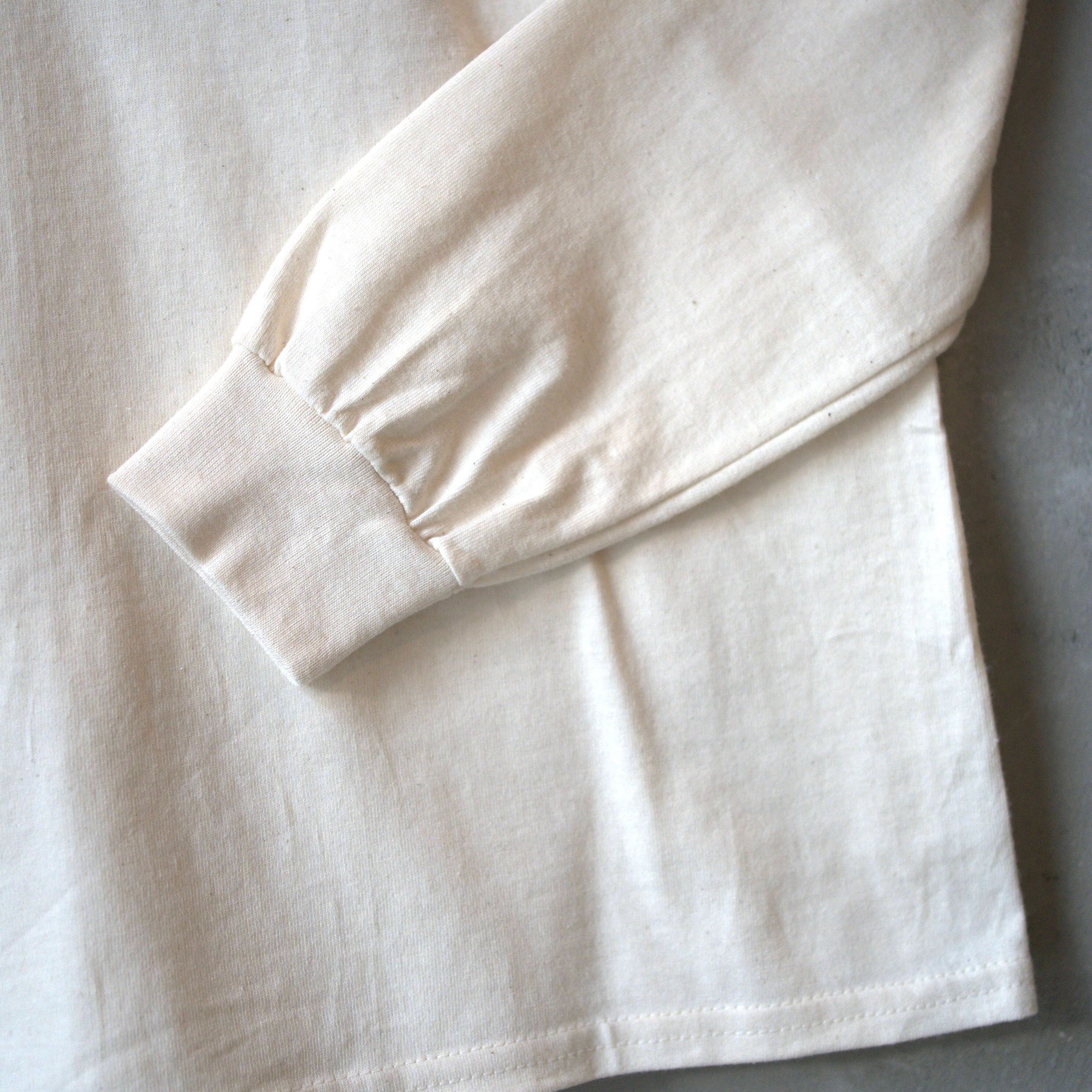 脇の縫い目が身体に当たらないので着心地がよく、首周りはダブルステッチで繰り返し洗濯をしても伸びにくい仕様に。